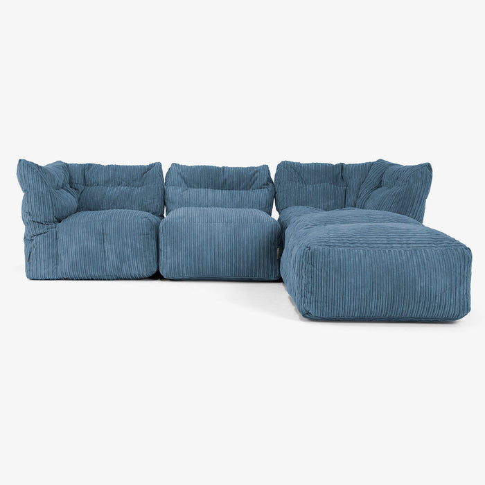 Lounge Pug 3-Sitzer Modulares Sofa-Set mit Récamiere rechts und Armlehnen Cord Marineblau– Big Bertha Original DE