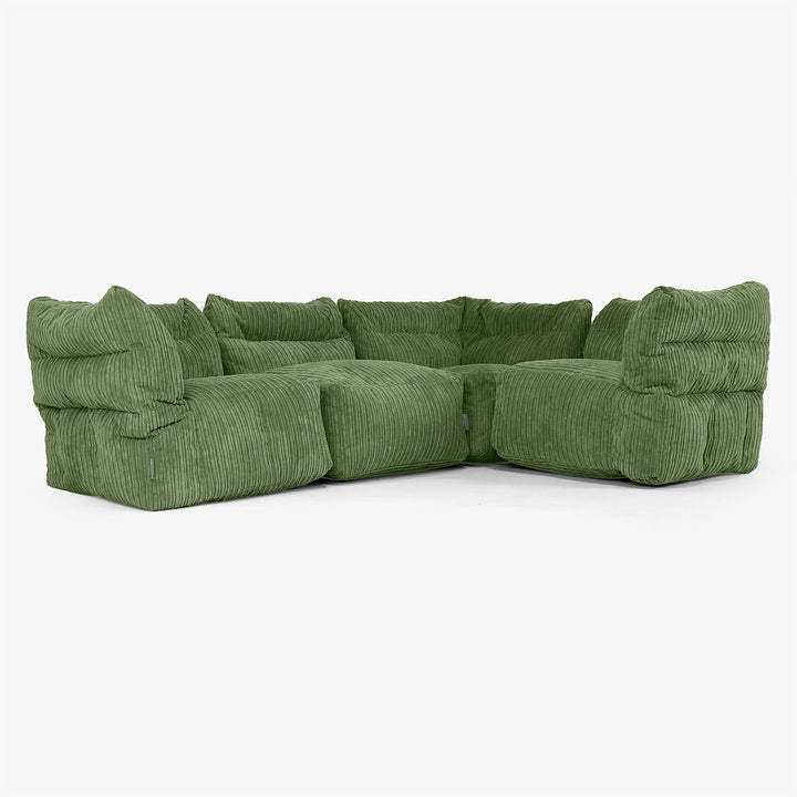 Lounge Pug 4-Sitzer Modulares Ecksofa-Set Cord Nadelwaldgrün– Big Bertha Original DE