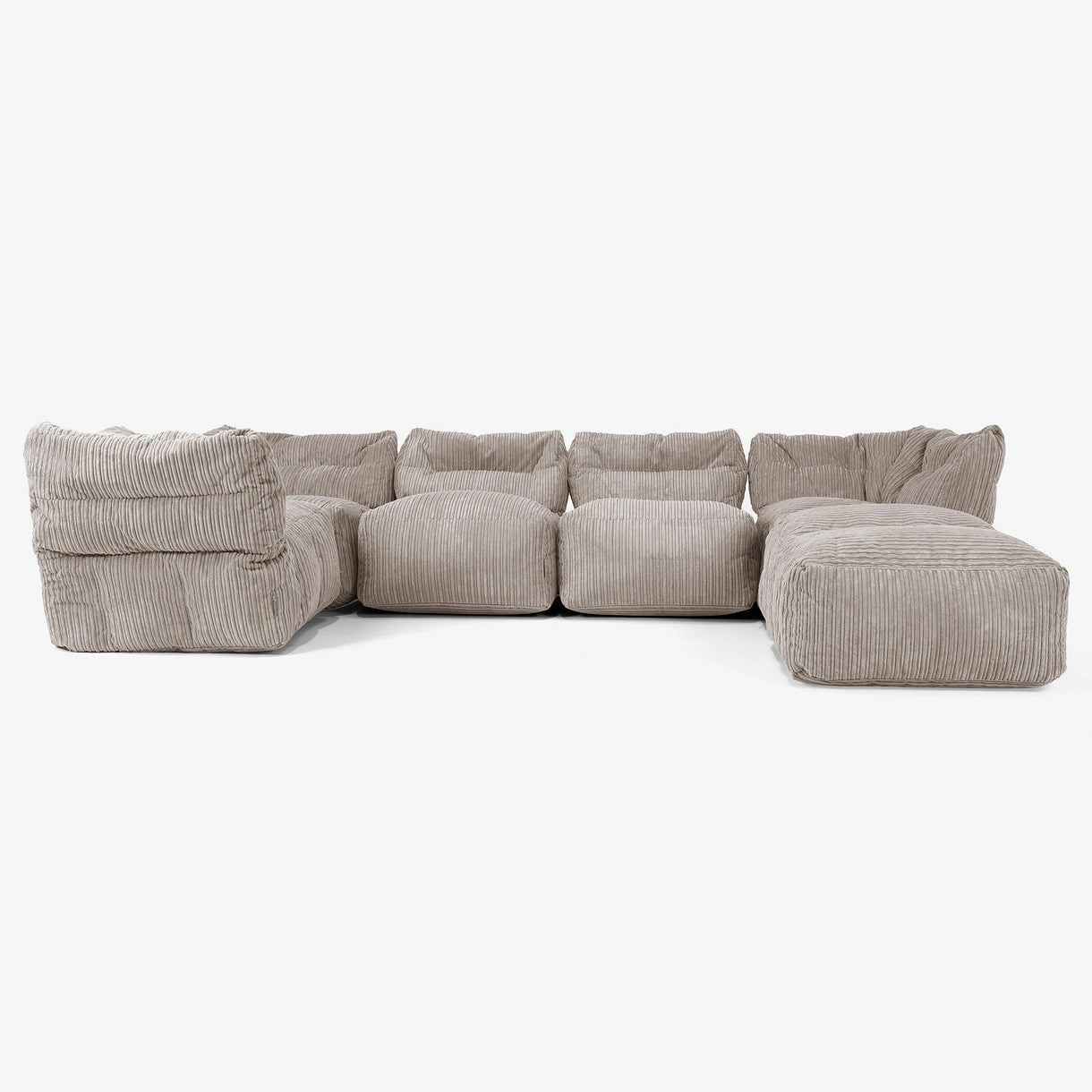 Lounge Pug 5-Sitzer Modulares Sofa-Set mit Récamiere rechts Cord Beigegrau– Big Bertha Original DE