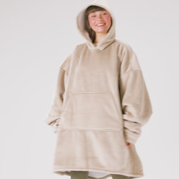 Lounge Pug Hoodie Decke für Erwachsene, Fleece Crème / Nerzfarben, Einheitsgröße– Big Bertha Original DE
