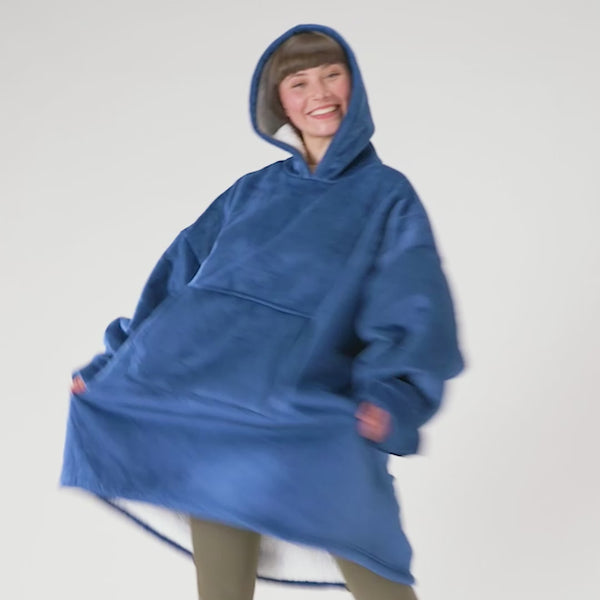 Lounge Pug Hoodie Decke für Erwachsene, Fleece Dunkelblau, Einheitsgröße– Big Bertha Original DE