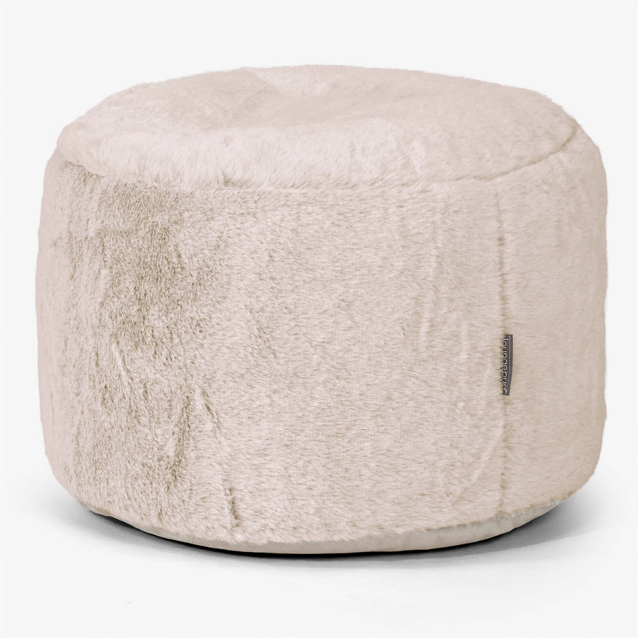 Lounge Pug Kleiner runder Fußhocker Kaninchen Kunstfell Goldbraun– Big Bertha Original DE