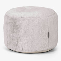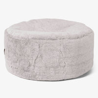 Lounge Pug Kleiner runder Fußhocker Kaninchen Kunstfell Hellgrau– Big Bertha Original DE
