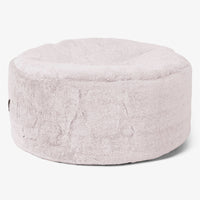 Lounge Pug Kleiner runder Fußhocker Kaninchen Kunstfell Pastellrosa– Big Bertha Original DE