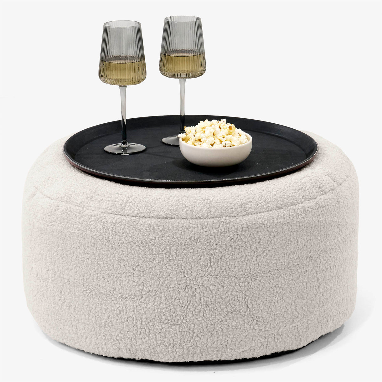 Lounge Pug Sitzhocker mit Tablett Bouclé Elfenbein– Big Bertha Original DE