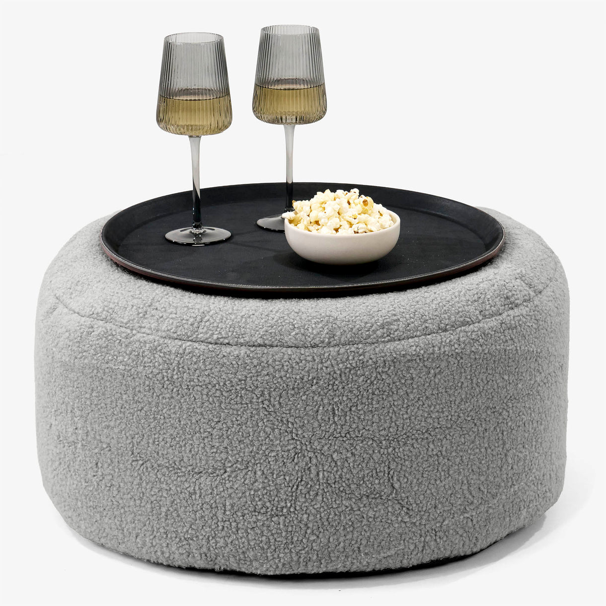 Lounge Pug Sitzhocker mit Tablett Bouclé Grau– Big Bertha Original DE