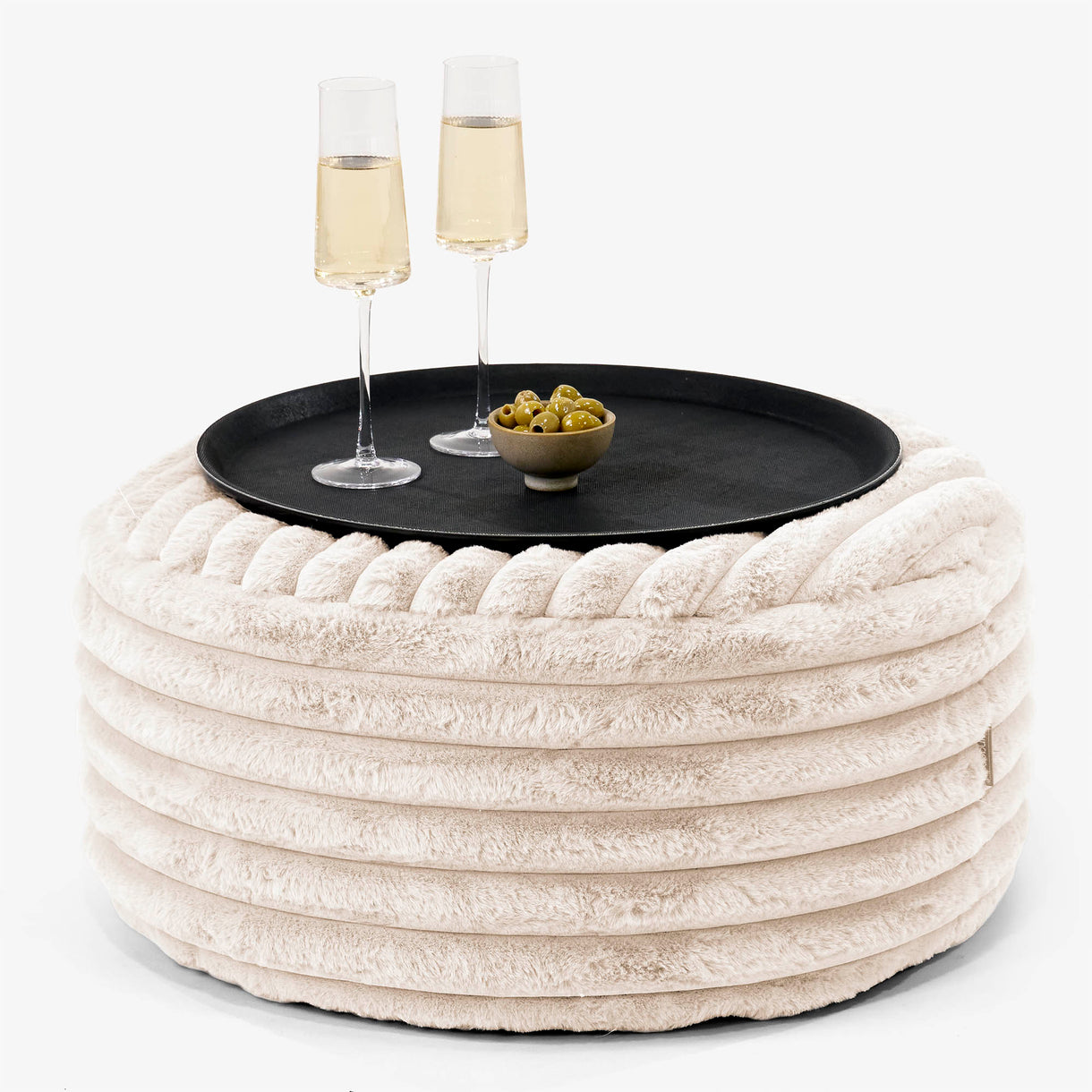Lounge Pug Sitzhocker mit Tablett Ultra Plüsch Cord Creme– Big Bertha Original DE
