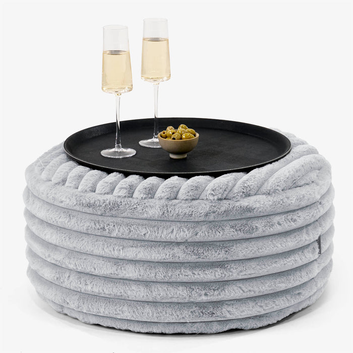 Lounge Pug Sitzhocker mit Tablett Ultra Plüsch Cord Taubenblau– Big Bertha Original DE